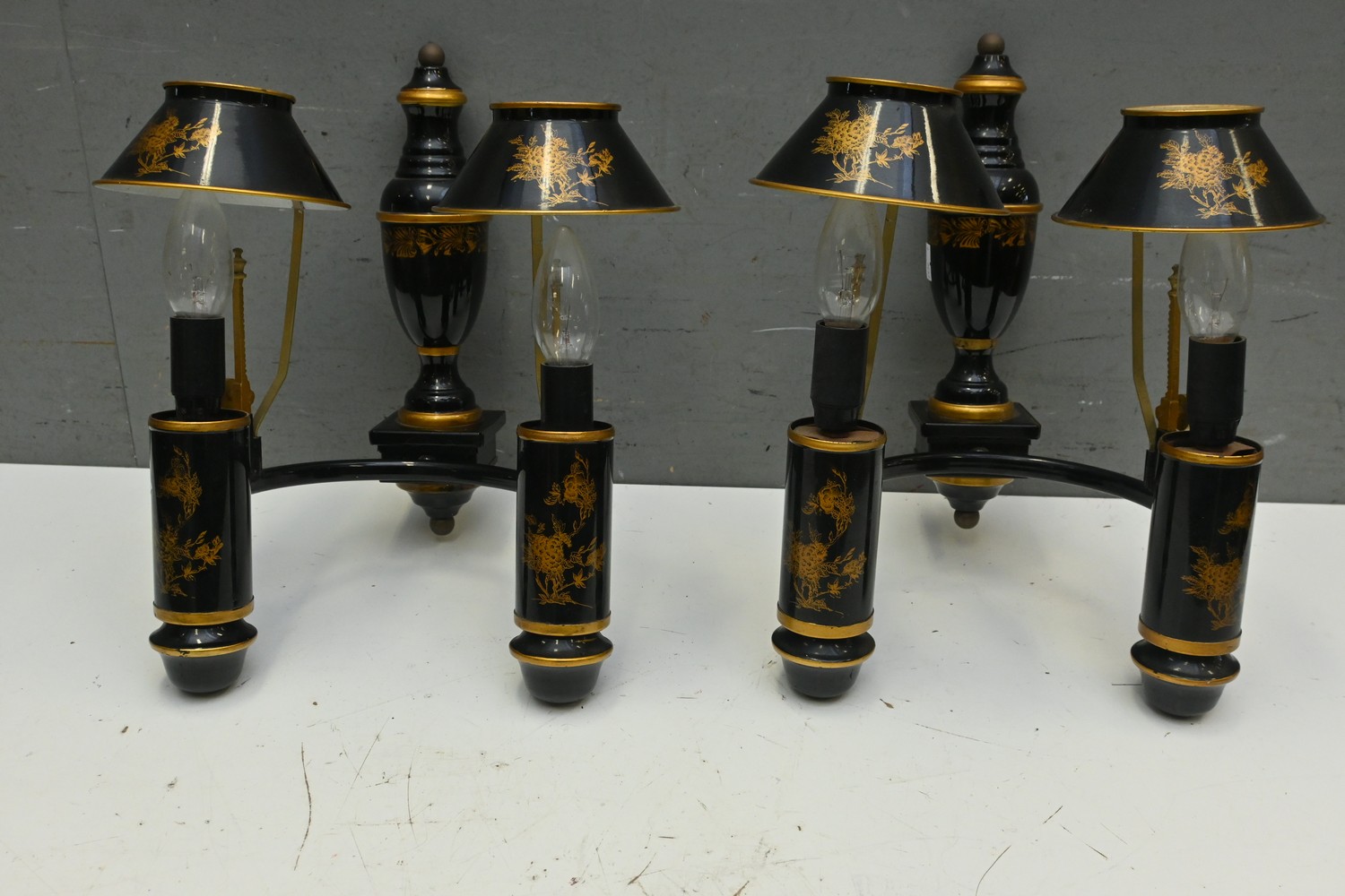 A PAIR OF HAND PAINTED ITALIAN FLORENTINE WALL SCONCES ( 33H X 31W X 25D CM) (LEONARD JOEL DELIVERY SIZE: MEDIUM)