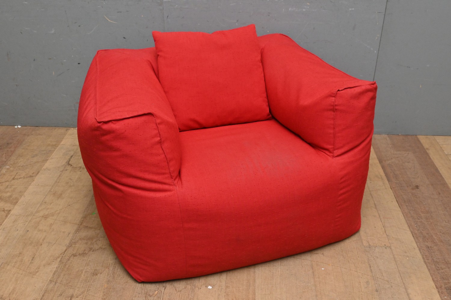 A RED ITALSOFA BEANBAG SOFA CHAIR WITH CUSHION, MADE IN ITALY (A/F) (70H X 117W X 96D CM) (LEONARD JOEL DELIVERY SIZE: X-LARGE)