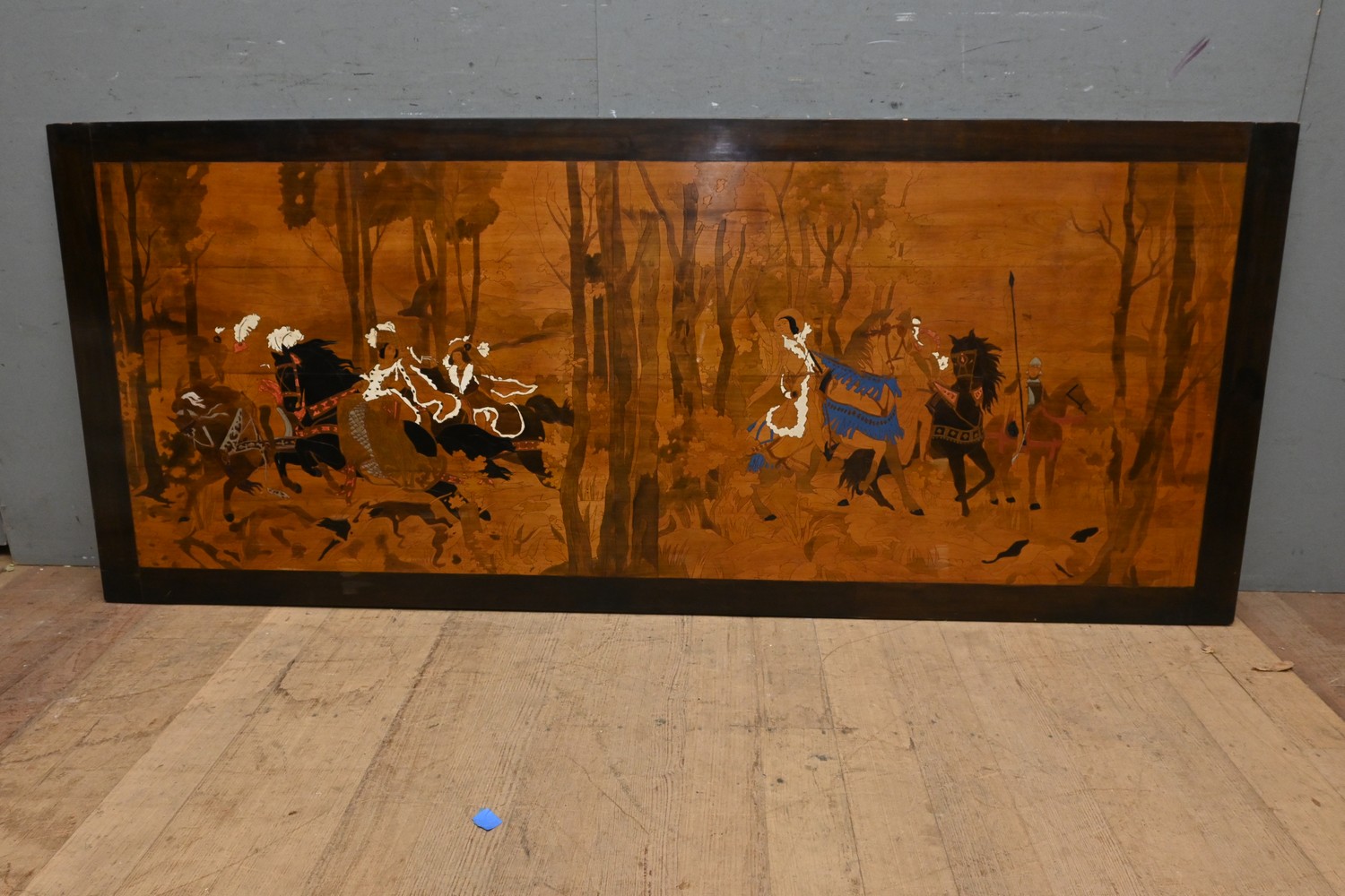 A EUROPEAN TIMBER WALL PLAQUE, SIGNED BY THE ARTIST "ELIANE" (A/F) (H84 X W201 CM) (H84 X W201 CM) (PLEASE NOTE THIS HEAVY ITEM MUST BE REMOVED BY CLIENTS OR CARRIERS AT THE CUSTOMERS EXPENSE. LEONARD JOEL STAFF CANNOT ASSIST CARRYING THIS ITEM)