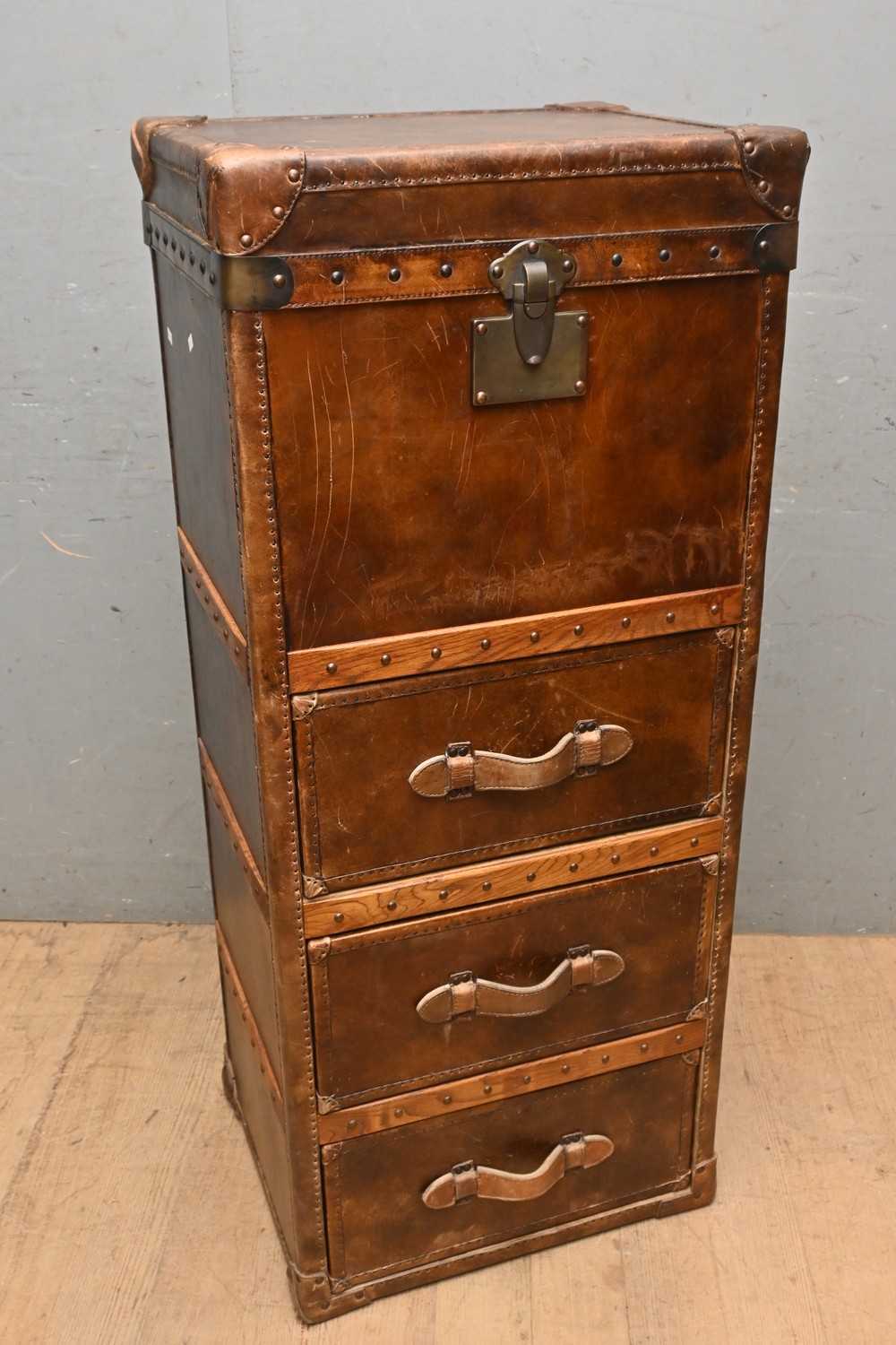 A LEATHER BOUND STORAGE CHEST BY BOND ST LONDON (122H X 52W X 42D CM) (PLEASE NOTE THIS HEAVY ITEM MUST BE REMOVED BY CLIENTS OR CARRIERS AT THE CUSTOMERS EXPENSE. LEONARD JOEL STAFF CANNOT ASSIST CARRYING THIS ITEM)
