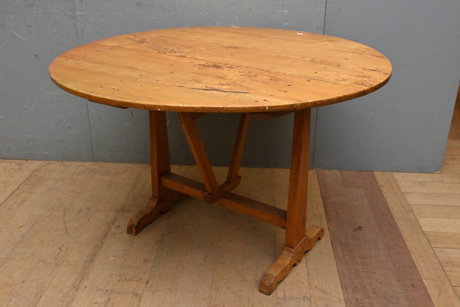 A 19th CENTURY FRENCH FRUITWOOD AND ELM VENDAGE TABLE (70H X 108D CM) (PLEASE NOTE THIS HEAVY ITEM MUST BE REMOVED BY CLIENTS OR CARRIERS AT THE CUSTOMERS EXPENSE. LEONARD JOEL STAFF CANNOT ASSIST CARRYING THIS ITEM)