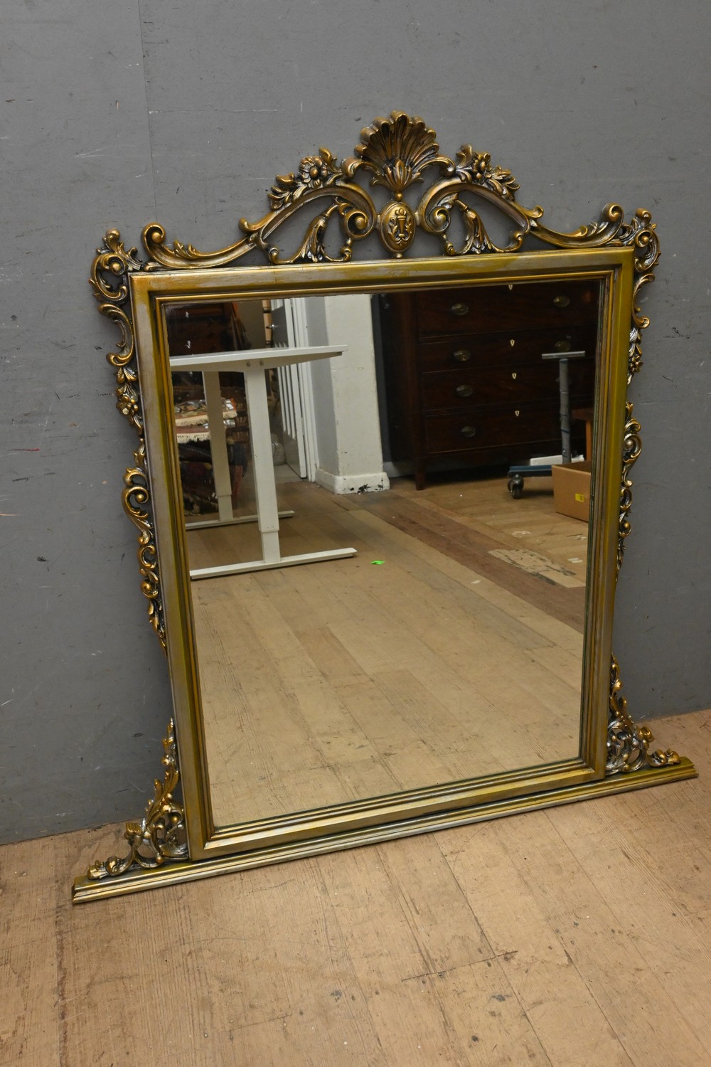 A DECORATIVE GILT EFFECT MANTLE MIRROR ( 118H X 116W CM) (LEONARD JOEL DELIVERY SIZE: LARGE) (LEONARD JOEL DELIVERY SIZE: LARGE)