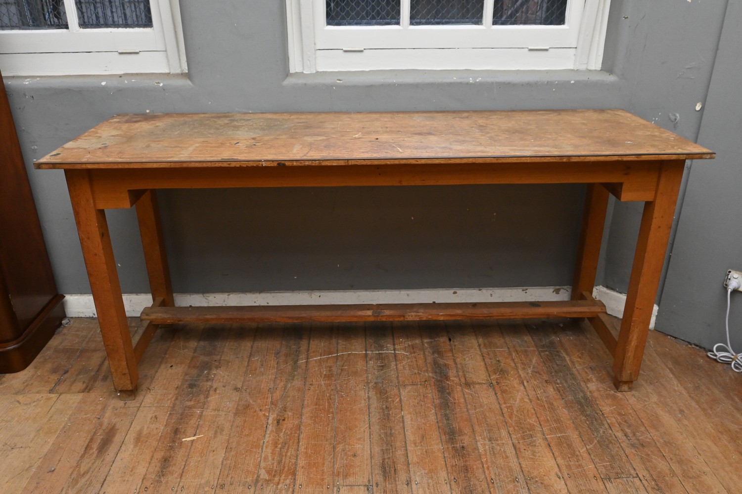 A HARDWOOD WORK BENCH (A/F) (H84 X W183 X D62 CM) (PLEASE NOTE THIS HEAVY ITEM MUST BE REMOVED BY CLIENTS OR CARRIERS AT THE CUSTOMERS EXPENSE. LEONARD JOEL STAFF CANNOT ASSIST CARRYING THIS ITEM)