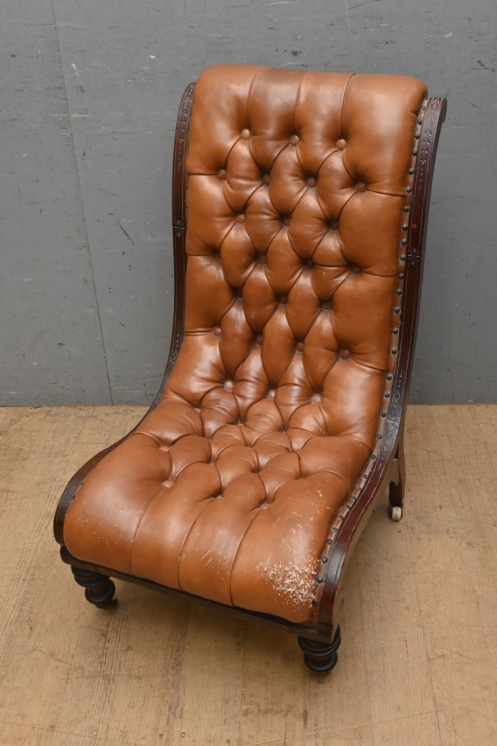 A VICTORIAN LEATHER BUTTON-BACK CHAIR (A/F) (H85 X W49 X D75 CM) (LEONARD JOEL DELIVERY SIZE: LARGE)