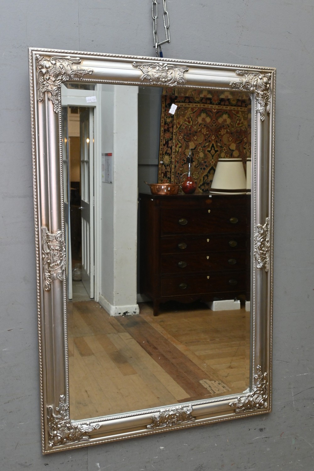 A BEVELLED WALL MIRROR IN A SILVERED FRAME ( 90 X 61 CM) (LEONARD JOEL DELIVERY SIZE: LARGE)