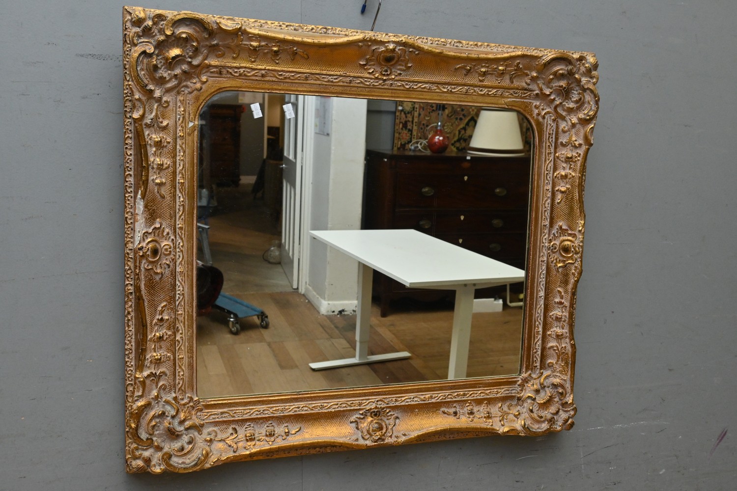 A WALL MIRROR IN ANTIQUE-STYLE CARVED AND GILT FRAME ( 70H X 82W CM) (LEONARD JOEL DELIVERY SIZE: LARGE)