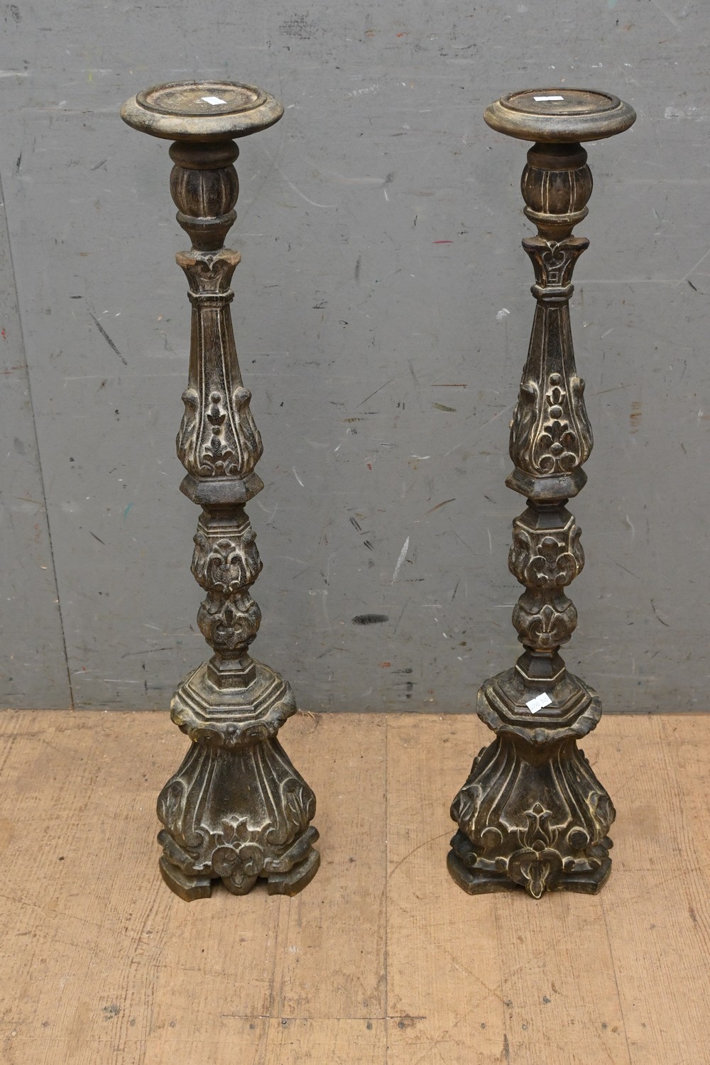 A PAIR OF FRENCH STYLE WOODEN CANDLESTICKS (77H CM) (LEONARD JOEL DELIVERY SIZE: MEDIUM)