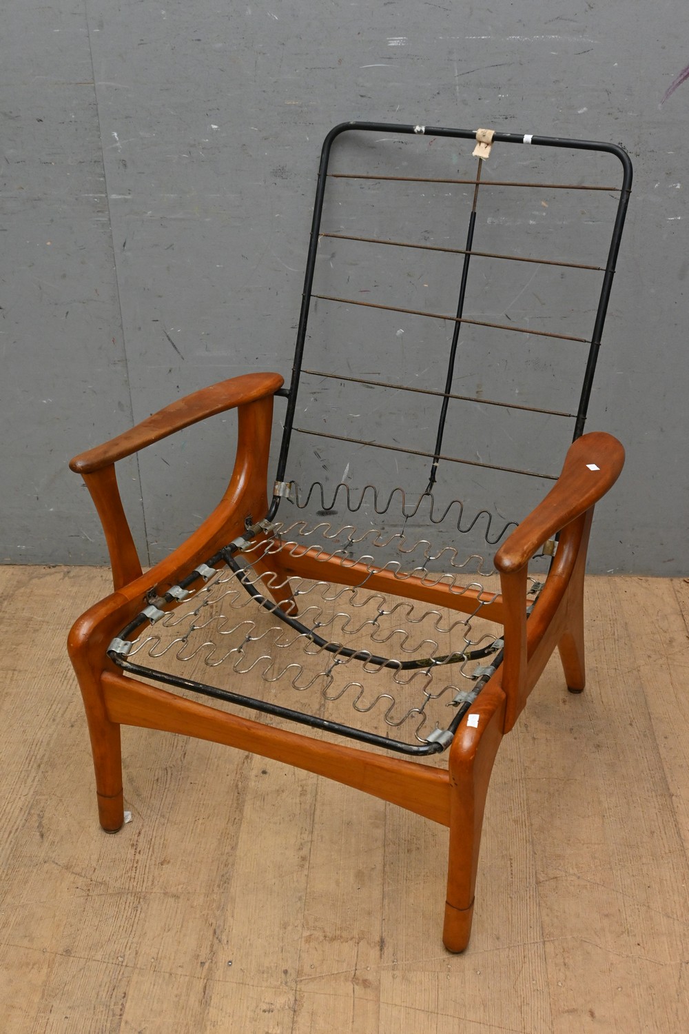 AN ORIGINAL AUSTRALIAN MADE MID CENTURY FLER TEAK FRAMED LOUNGE CHAIR WITH ORIGINAL LABEL TO BASE (H87 X W68 X D77 CM) (LEONARD JOEL DELIVERY SIZE: LARGE)