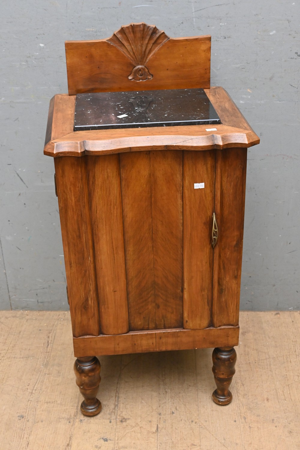 AN ART DECO WALNUT BEDSIDE CABINET WITH BLACK INSET MARBLE TOP (H93 X W45 X D36 CM) (LEONARD JOEL DELIVERY SIZE: LARGE)