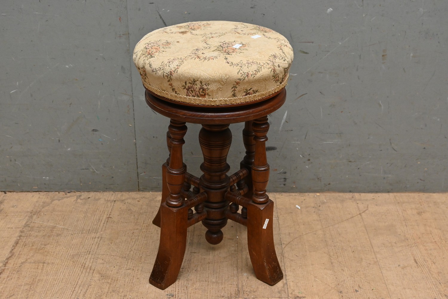 A LATE VICTORIAN WALNUT PIANO STOOL OF DJUSTABLE HEIGHT (A/F) (52H X 36D CM) (LEONARD JOEL DELIVERY SIZE: MEDIUM)