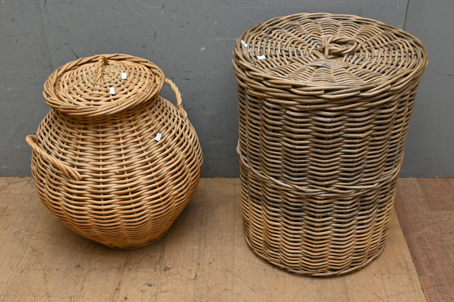 TWO WOVEN CANE LIDDED BASKETS (H65 X D51 CM) (LEONARD JOEL DELIVERY SIZE: LARGE)