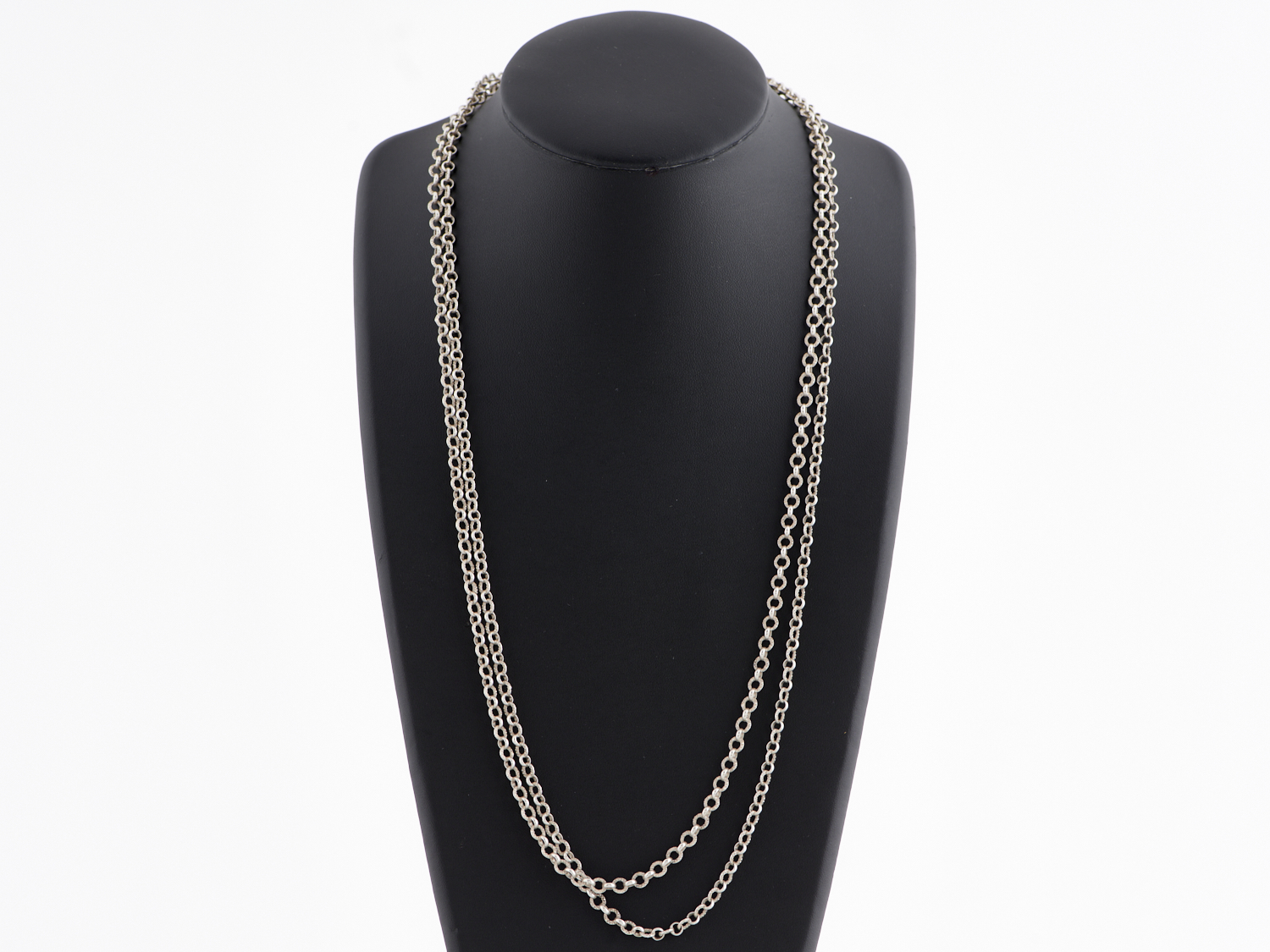 A FRENCH FANCY LINK GUARD CHAIN IN CONTINENTAL SILVER, TOTAL LENGTH 1420MM, HALLMARKED
