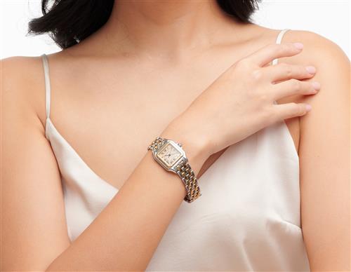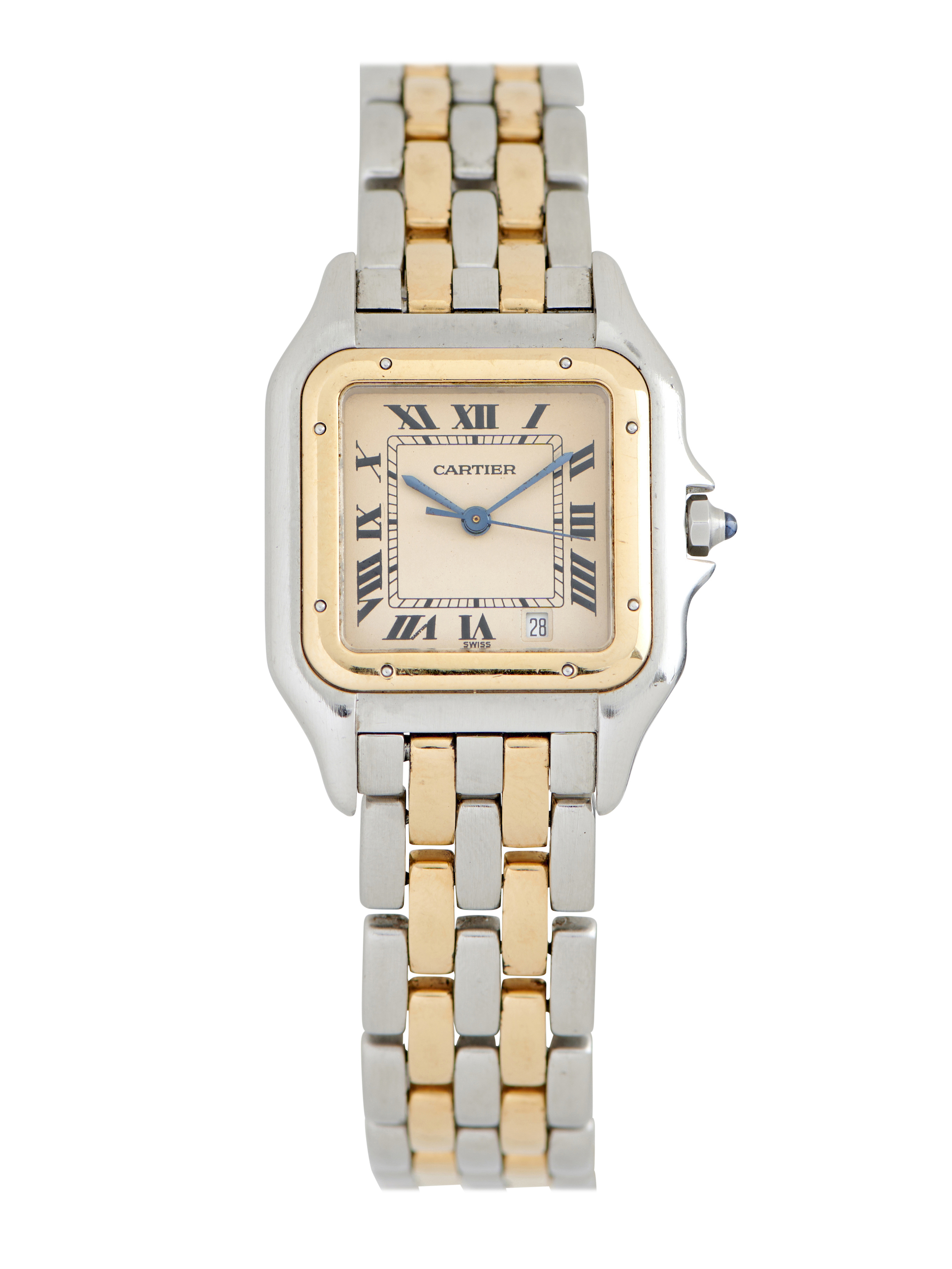 Closure: Cartier fitted gold and stainless steel link and folding clasp