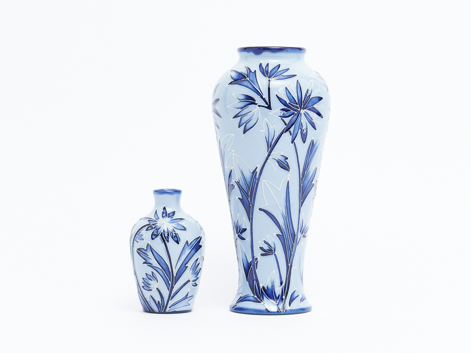 TWO MOORCROFT "NORTHERN STAR" VASES, 2003, H.22CM AND 10CM, LEONARD JOEL LOCAL DELIVERY: SMALL