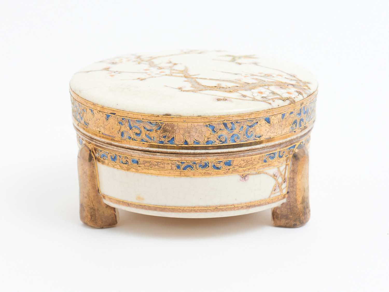 A JAPANESE SATSUMA LIDDED BOWL DIA.13CM, LEONARD JOEL LOCAL DELIVERY: SMALL