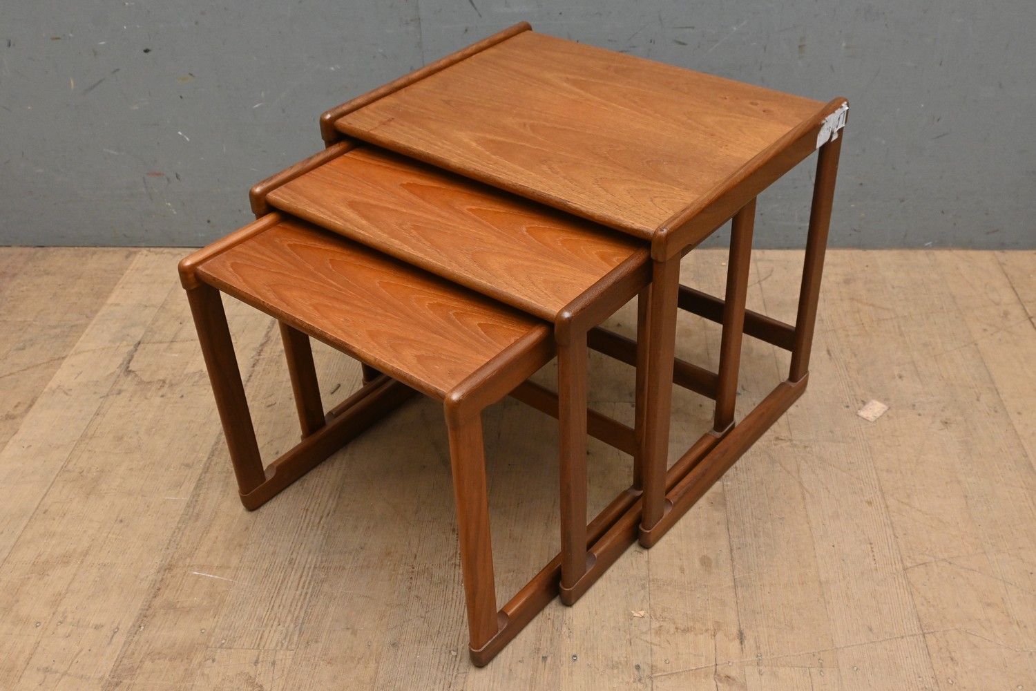 A NEST OF THREE G-PLAN SQUARE TABLES (49H X 55W X 44D CM) (LEONARD JOEL DELIVERY SIZE: LARGE)