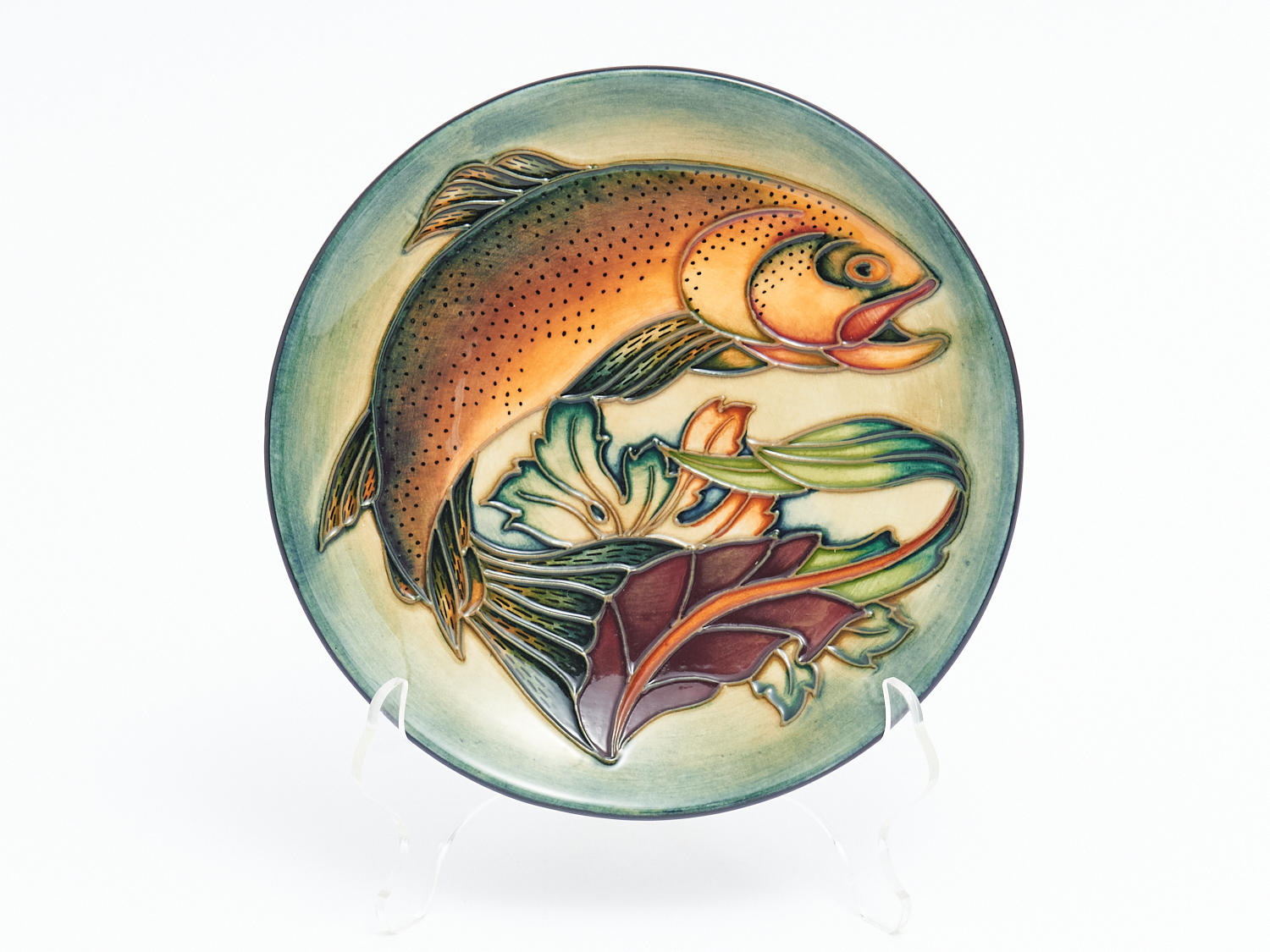 A MOORCROFT "TROUT" PLATE DESIGNED BY PHILIP GIBSON, DIA.16CM, LEONARD JOEL LOCAL DELIVERY: SMALL