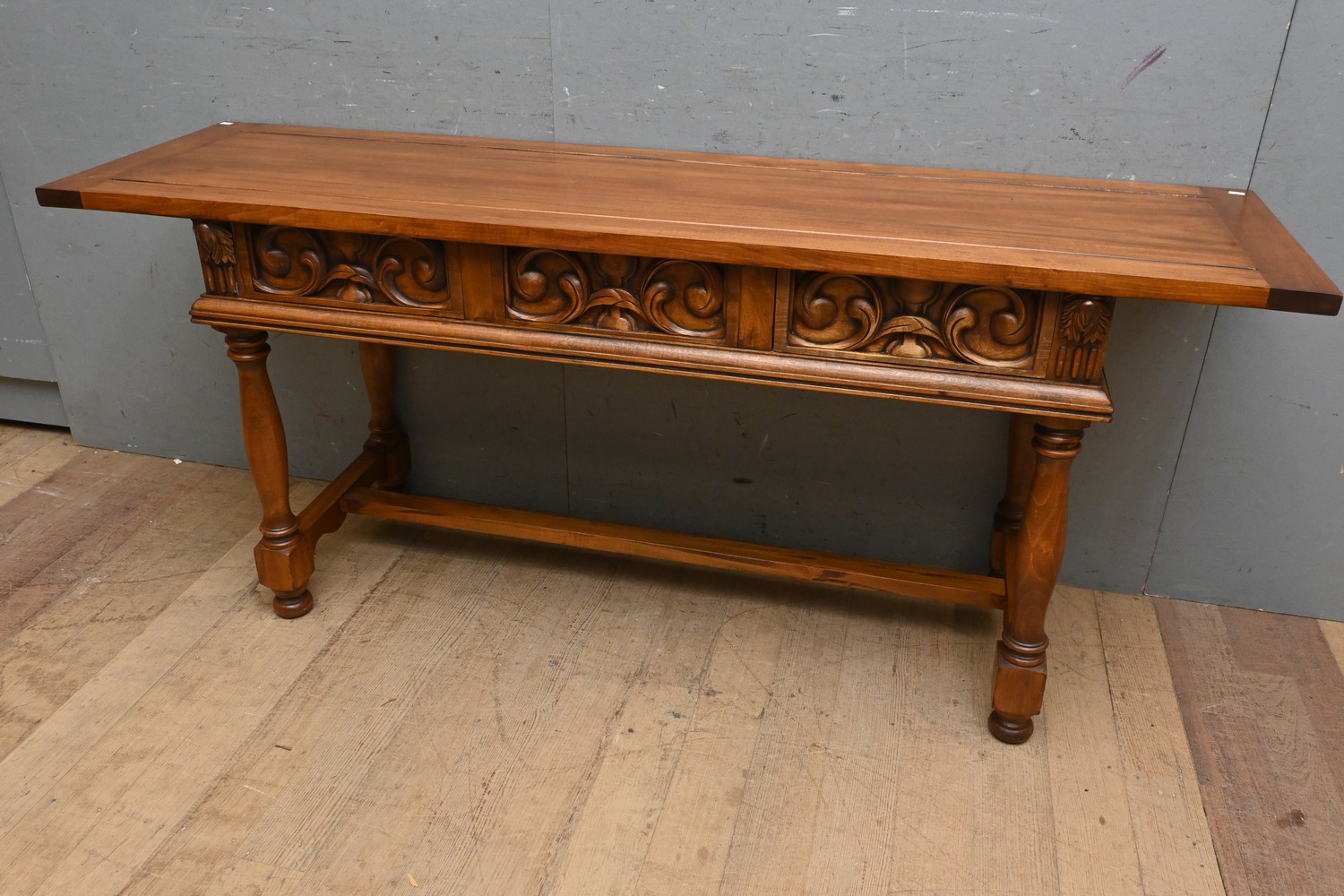 AN ITALIAN PROVINCIAL CONSOLE TABLE WITH THREE CARVED DRAWERS (76H X 175W X 48D CM) (LEONARD JOEL DELIVERY SIZE: X-LARGE)