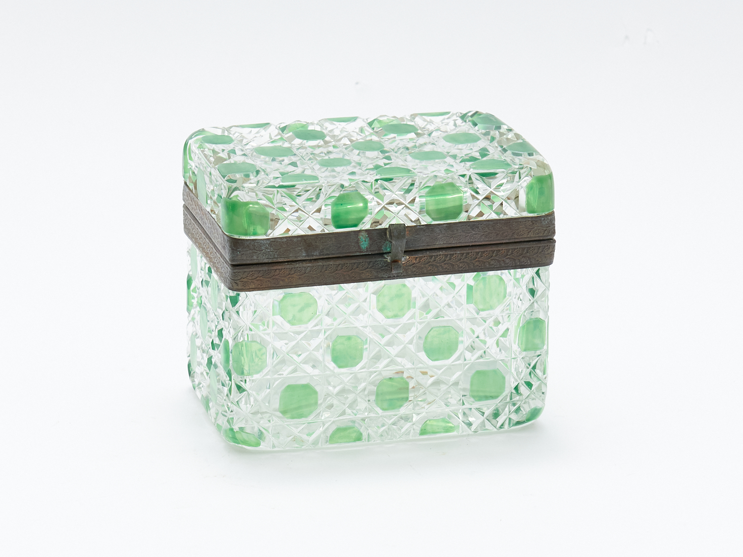 A HOBNAIL CUT GLASS TABLE BOX WITH HINGED LID H.15CM X W.13.5CM X D.9CM, LEONARD JOEL LOCAL DELIVERY: SMALL