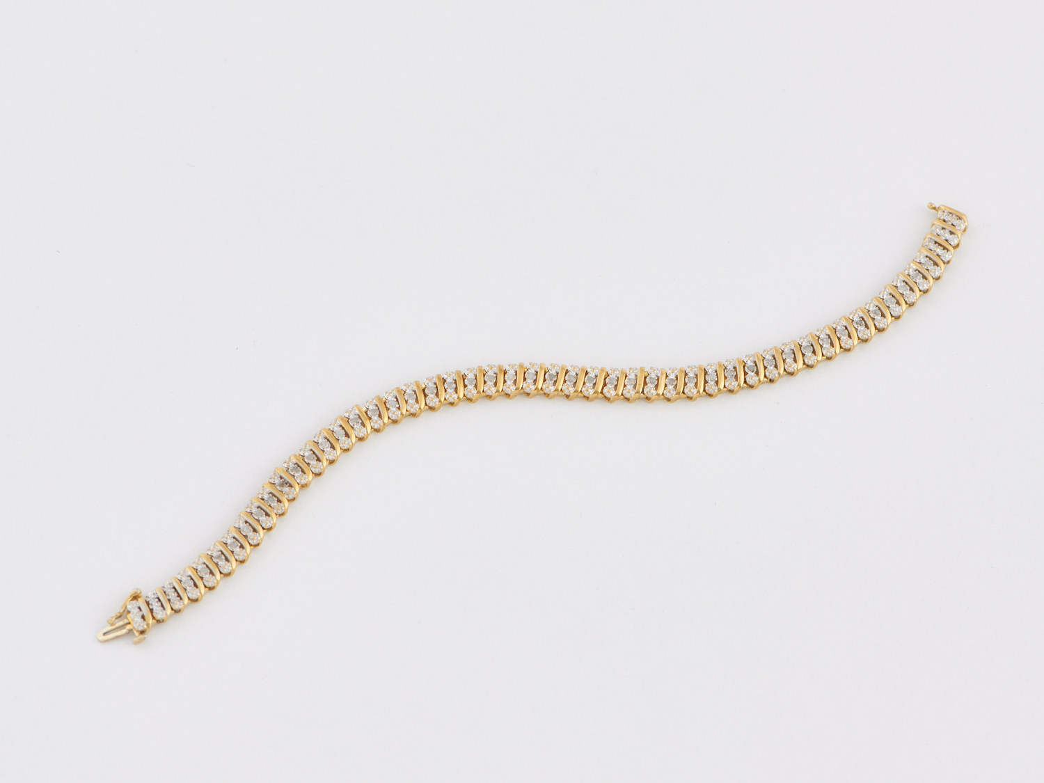 A DIAMOND LINE BRACELET IN 9CT GOLD, THE DIAMONDS TOTALLING 0.44CTS, 11.86GMS, 190MM