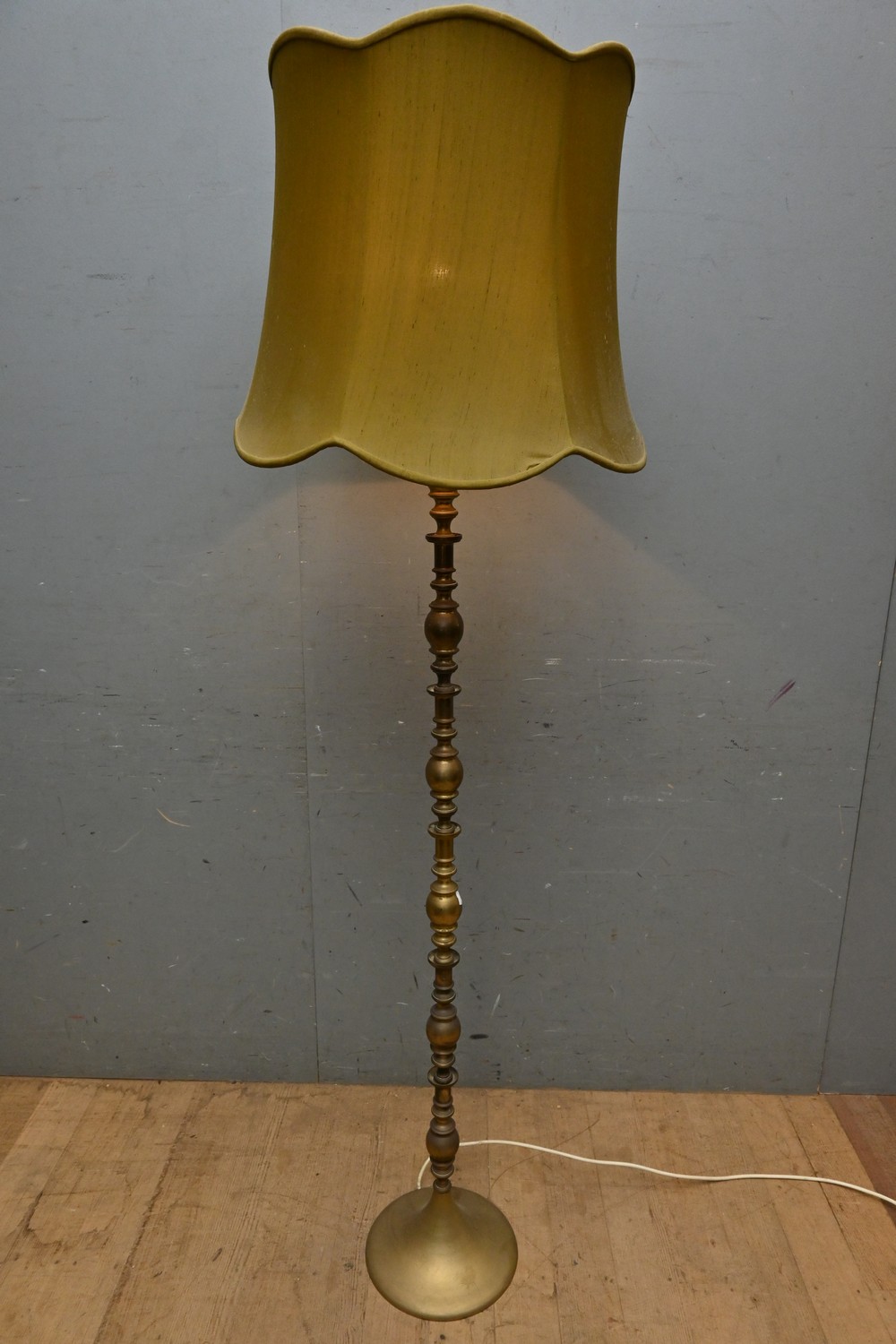 A BRASS STANDARD LAMP WITH SHADE (A/F) (183H CM) (LEONARD JOEL DELIVERY SIZE: LARGE)