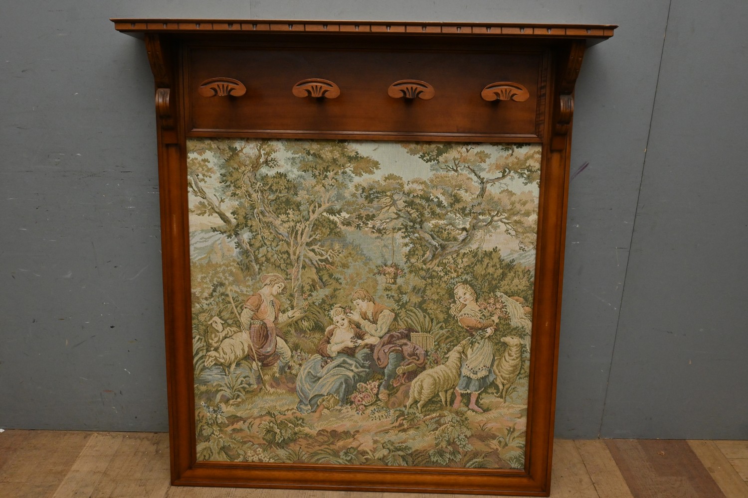 A FRENCH TAPESTRY WALL MOUNTED COAT STAND (A/F) (H133 X W123 X D18 CM) (LEONARD JOEL DELIVERY SIZE: LARGE)