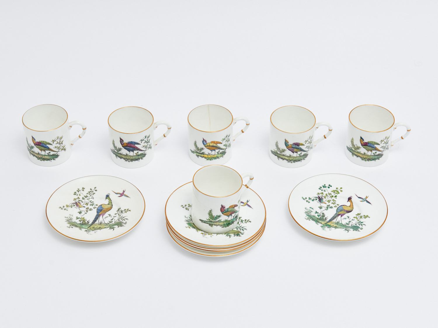 A GROUP OF ROYAL WORCESTER PHEASANT PATTERN DEMITASSE COFFEE CUPS AND SAUCERS (A/F ONE CUP), LEONARD JOEL LOCAL DELIVERY: SMALL