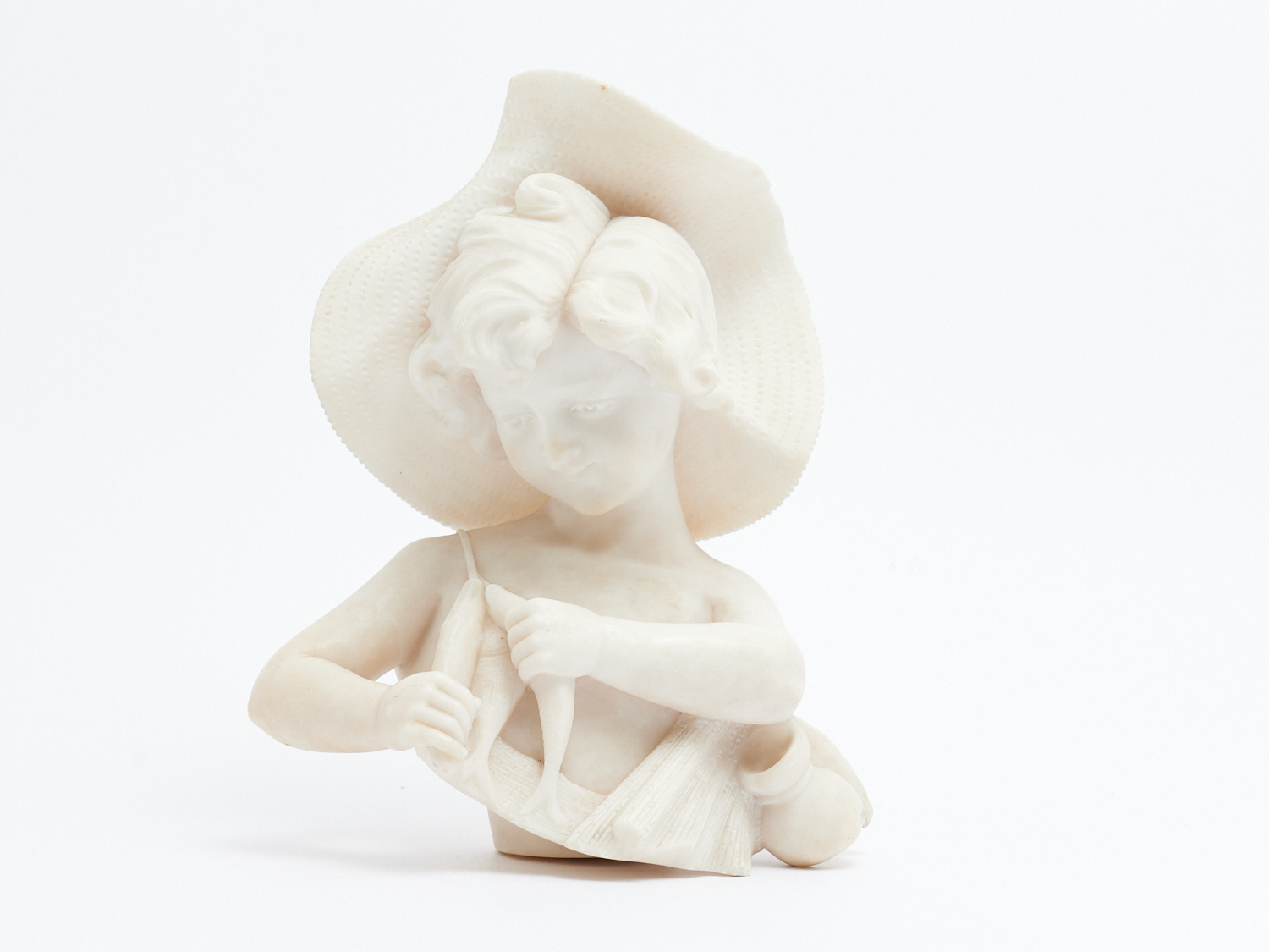 AN ALABASTER BUST OF A GIRL IN A HAT H.31CM, LEONARD JOEL LOCAL DELIVERY: MEDIUM