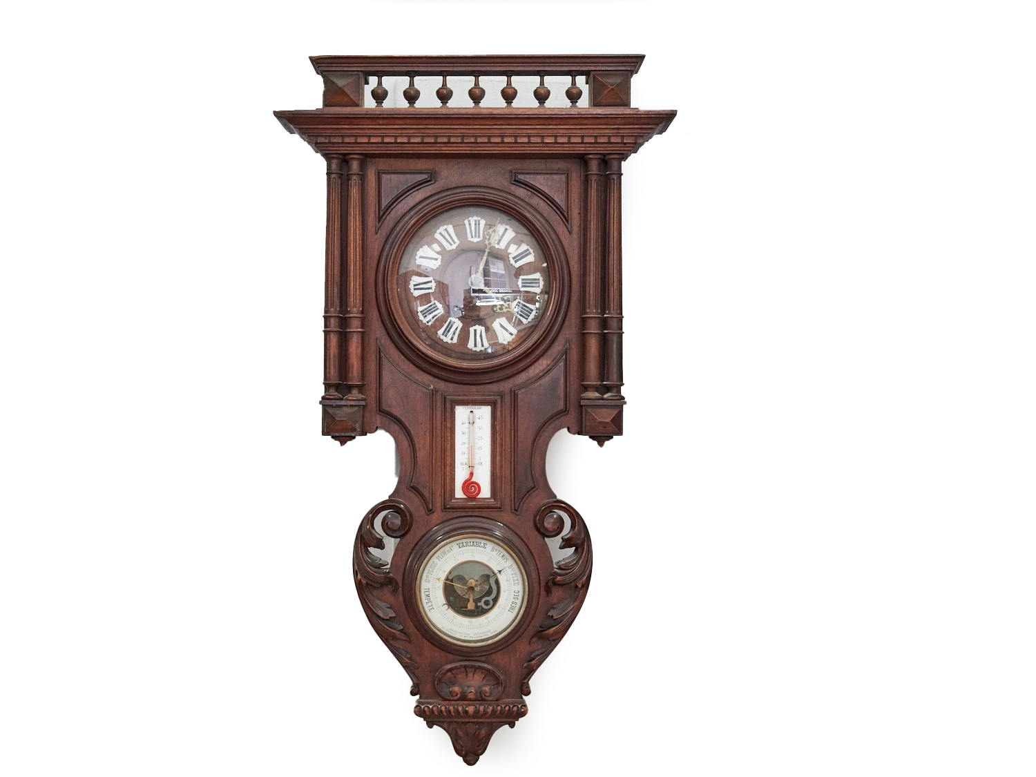 A WOODEN CASE WALL CLOCK WITH BAROMETER H.86CM, LEONARD JOEL LOCAL DELIVERY: MEDIUM