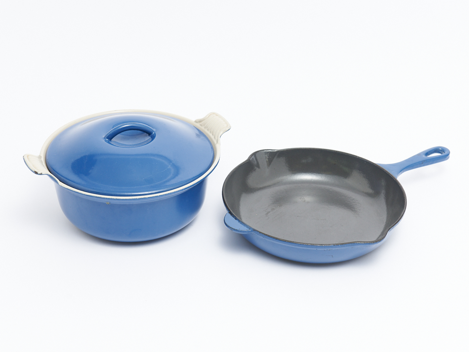 TWO LE CREUSET INCLUDING BOWL AND PAN L.23CM (LARGEST), LEONARD JOEL LOCAL DELIVERY: MEDIUM