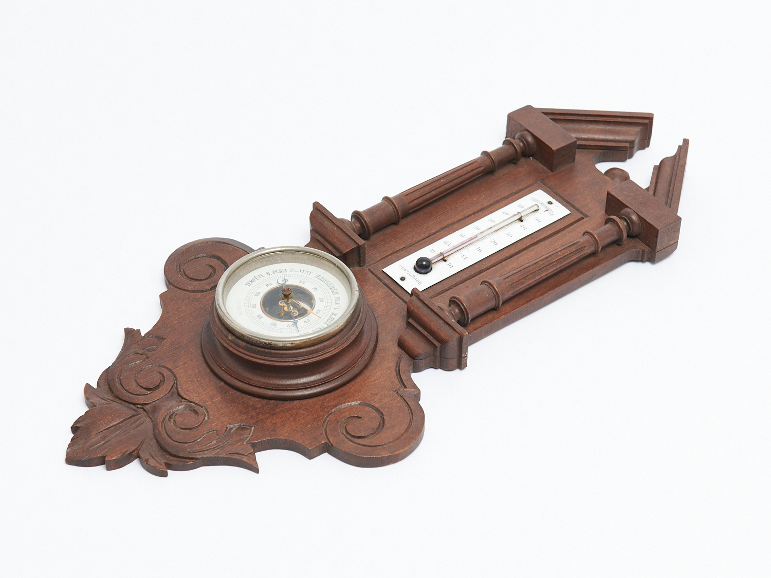 A WOOD CASED THERMOMETER/BAROMETER H.49CM, LEONARD JOEL LOCAL DELIVERY: SMALL