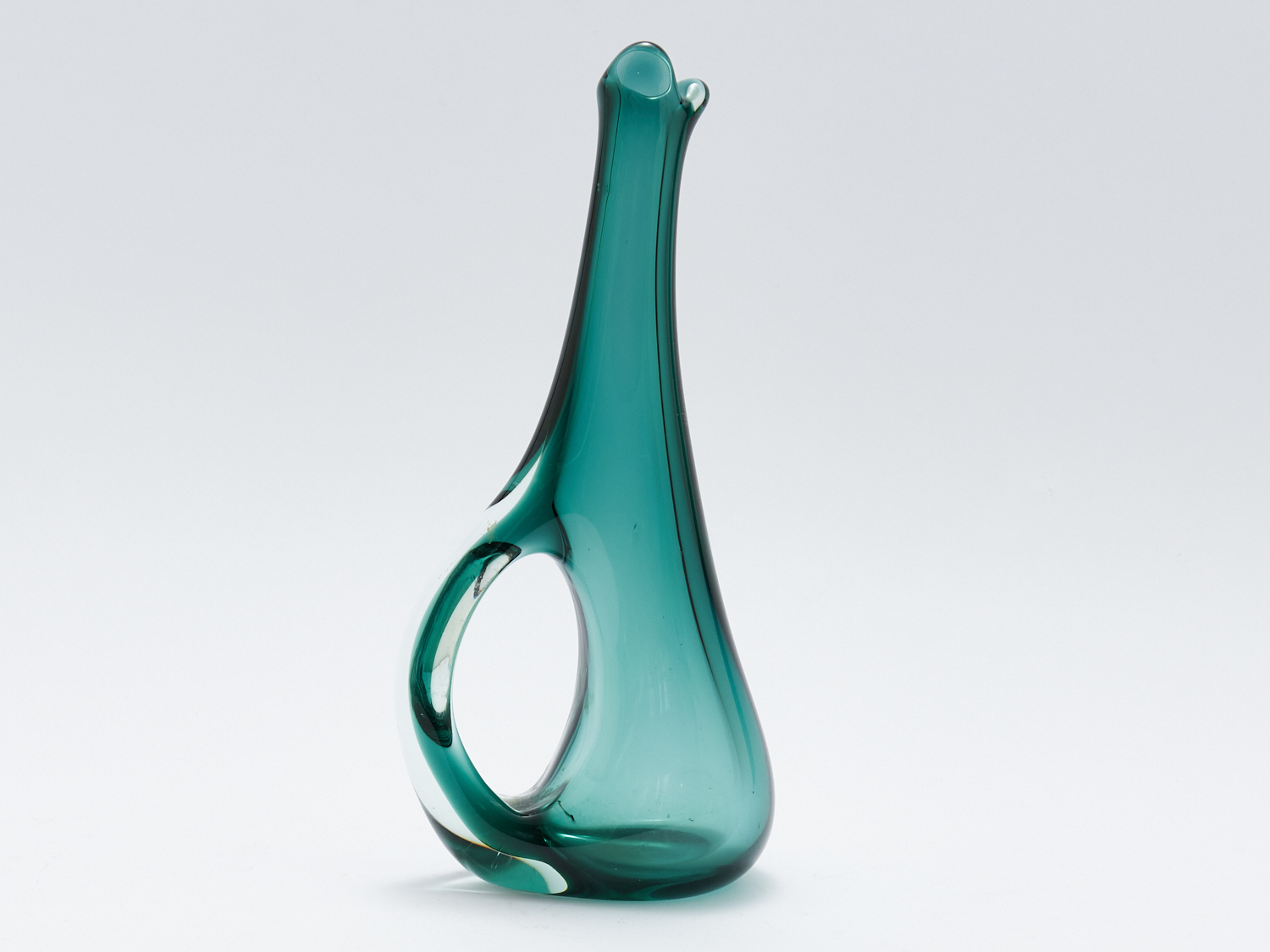 A BLUE GLASS JUG IN THE MANNER OF POLS POTTEN H.29 CM, LEONARD JOEL LOCAL DELIVERY: SMALL