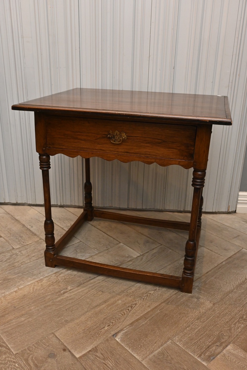 A GEORGIAN STYLE SINGLE DRAWER OAK SIDE TABLE (A/F) (75H X 80W X 66D CM)
