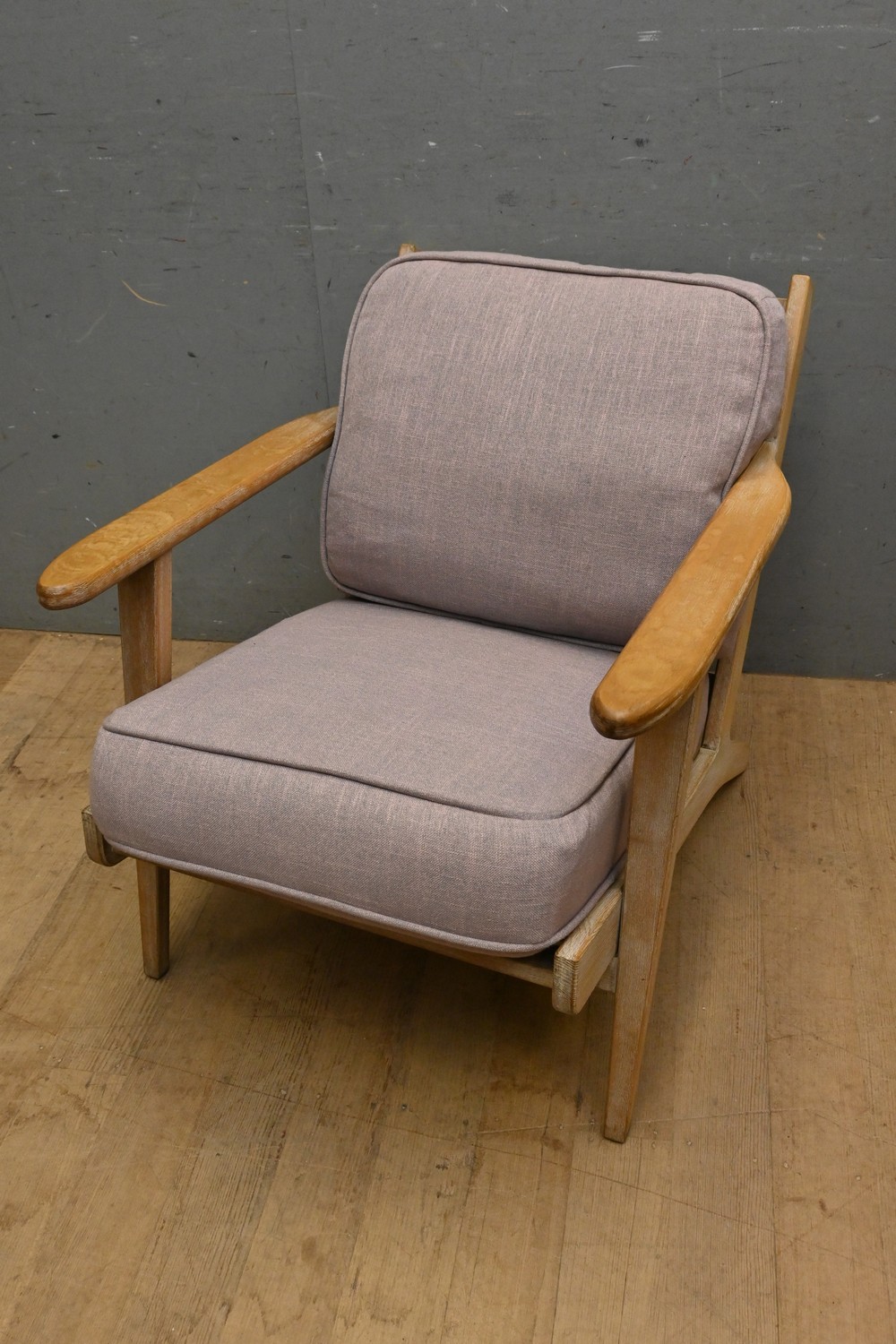 A CONTEMPORARY UPHOLSTERED ARMCHAIR (A/F) (H76 X W69 X D93 CM) (LEONARD JOEL DELIVERY SIZE: LARGE)