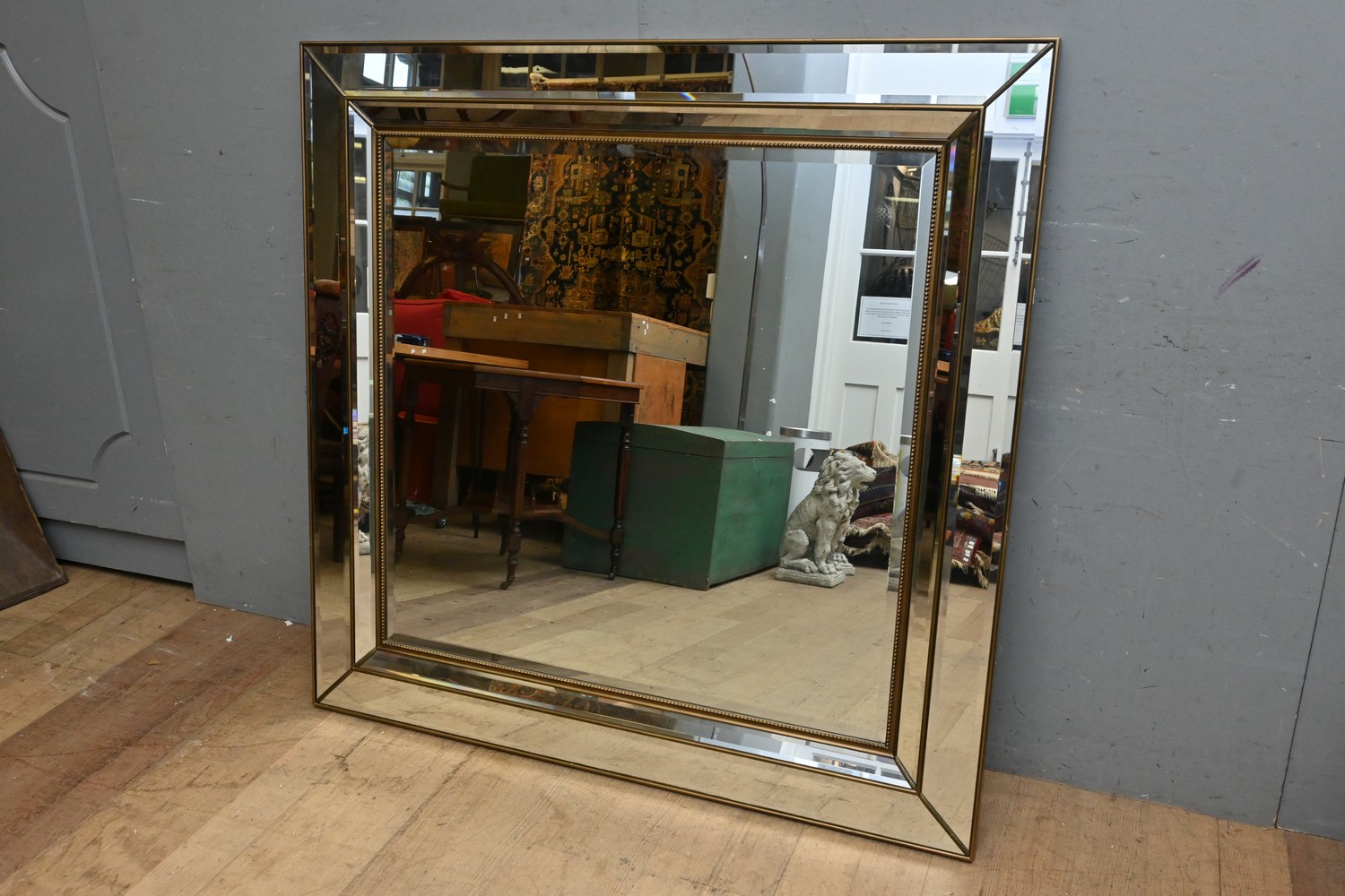 AN ART DECO STYLE GILT EFFECT BEVELLED EDGE WALL MIRROR (127H X 129W CM) (LEONARD JOEL DELIVERY SIZE: X-LARGE)