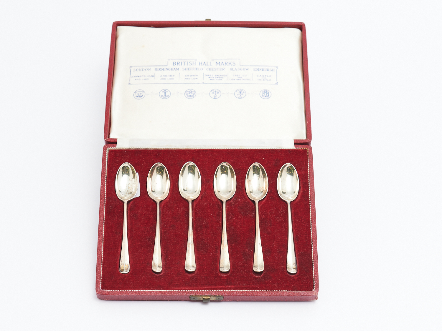 A SET OF SIX STERLING SILVER COFFEE SPOONS L.11CM, LEONARD JOEL LOCAL DELIVERY: SMALL