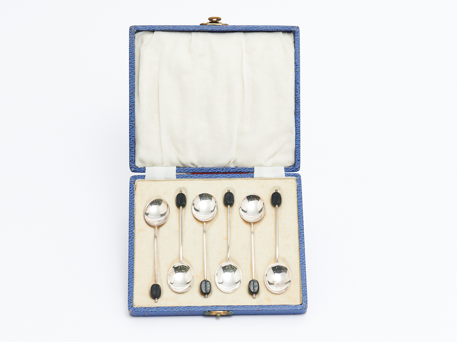 A SET OF SIX STERLING SILVER COFFEE SPOONS WITH COFFEE BEAN HANDLE , LEONARD JOEL LOCAL DELIVERY: SMALL