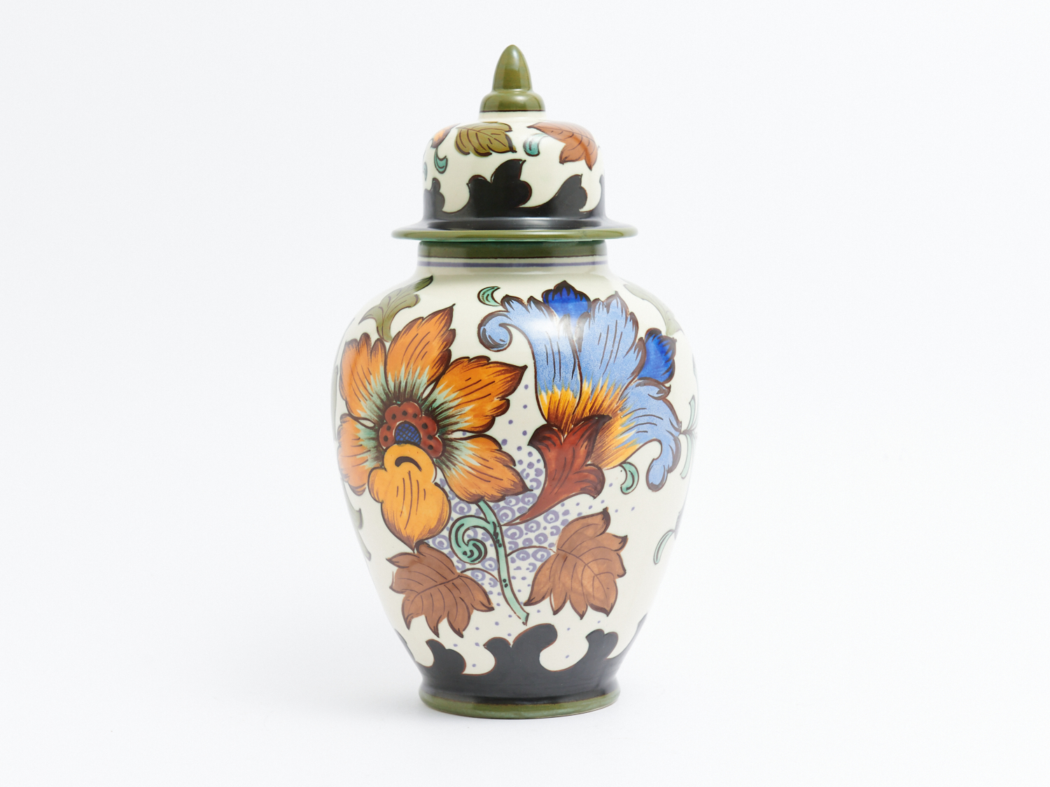 AN ART DECO GOUDA LIDDED URN, H.34CM, LEONARD JOEL LOCAL DELIVERY: MEDIUM