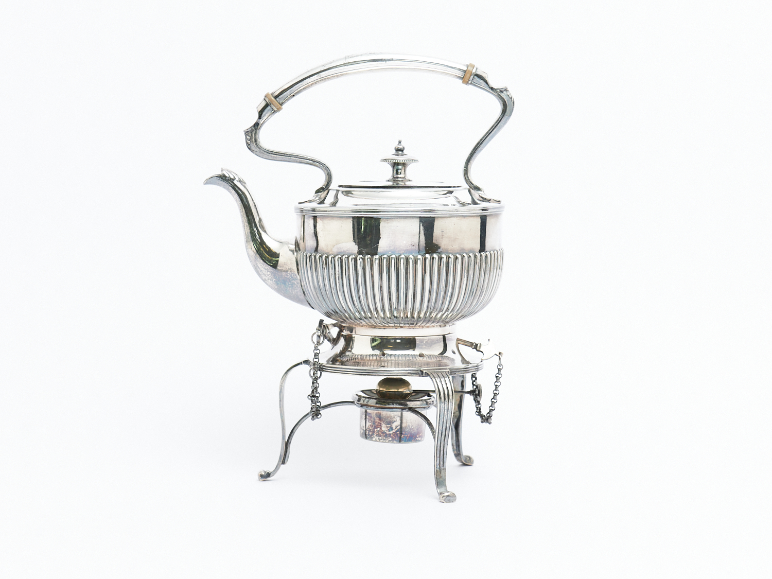 A VICTORIAN SILVER PLATE SPIRIT KETTLE ON STAND, H.31CM, LEONARD JOEL LOCAL DELIVERY: SMALL