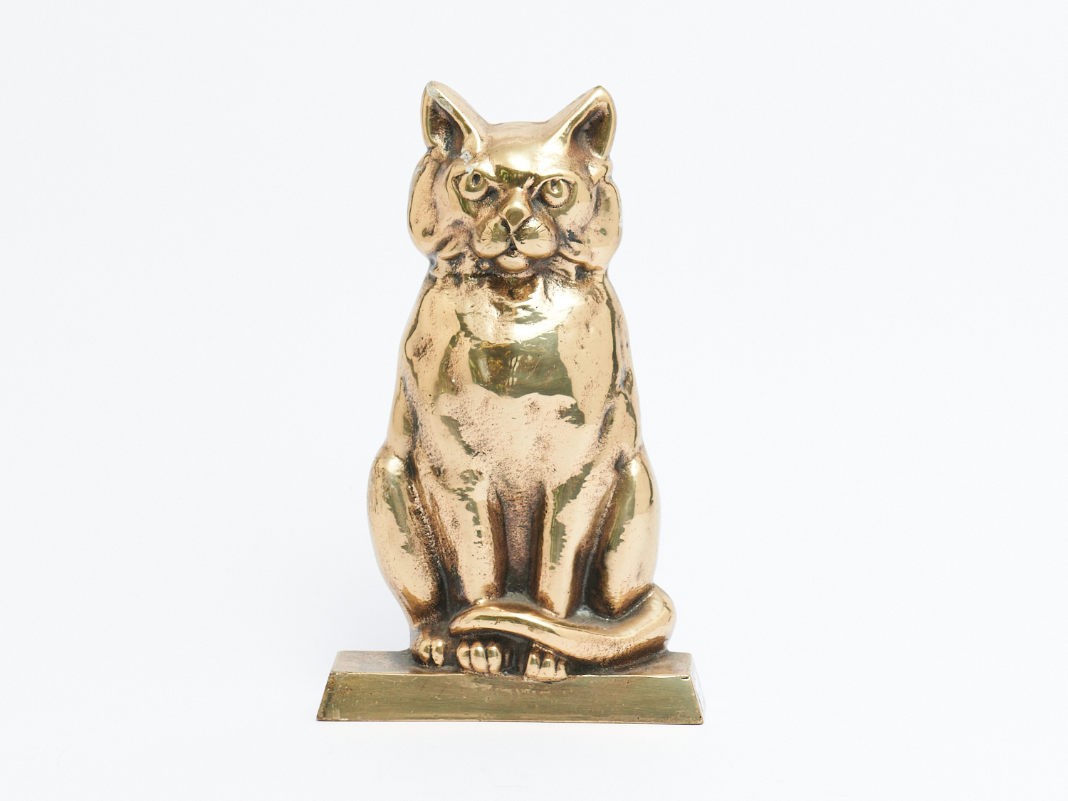 A BRASS CAT FORM DOORSTOP, H.26CM, LEONARD JOEL LOCAL DELIVERY: SMALL
