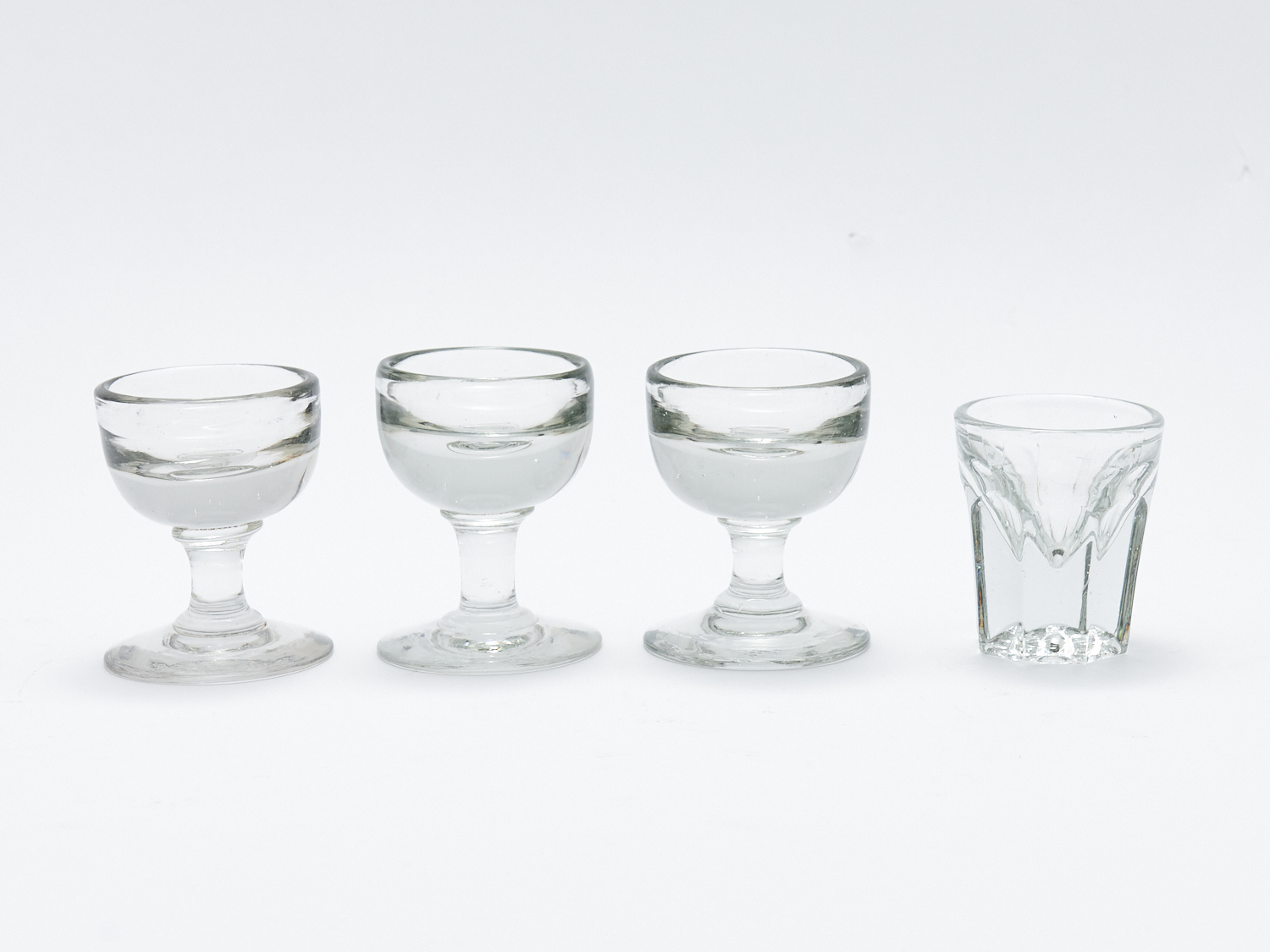 FOUR PENNY LICK GLASSES AND A TOAST MASTER GLASS, H.7.5CM (TALLEST), LEONARD JOEL LOCAL DELIVERY: SMALL