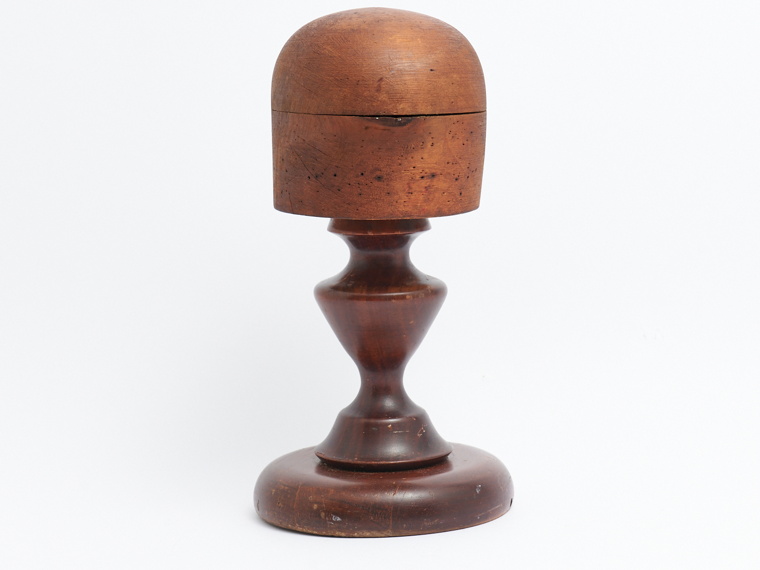 AN AUSTRALIAN BLACKWOOD AND HUON PINE MILNER'S HAT BLOCK, H.36CM, LEONARD JOEL LOCAL DELIVERY: MEDIUM
