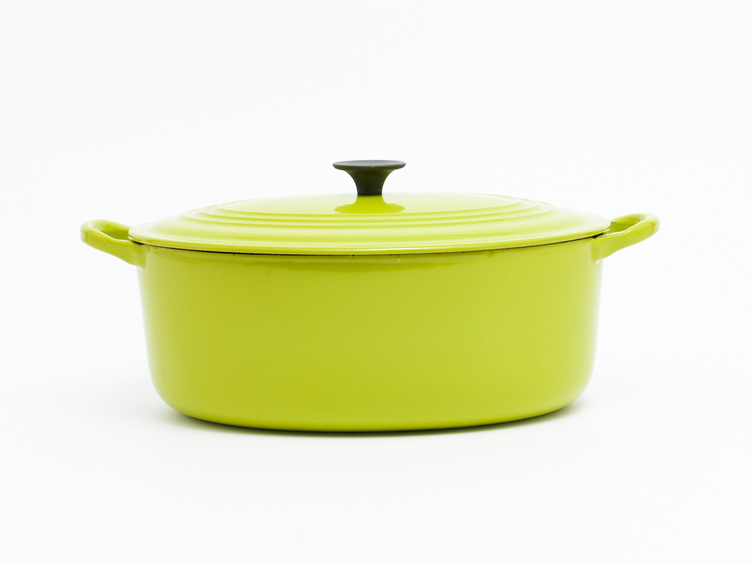 A FRENCH GREEN ENAMELLED TWO HANDLED LE CRUESET POT, W.34CM, LEONARD JOEL LOCAL DELIVERY: MEDIUM