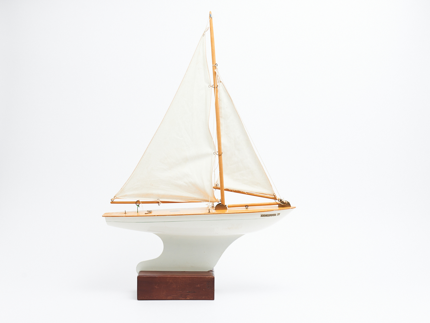 AN ENGLISH WOODEN MODEL YACHT ON STAND, H.69CM, LEONARD JOEL LOCAL DELIVERY: MEDIUM