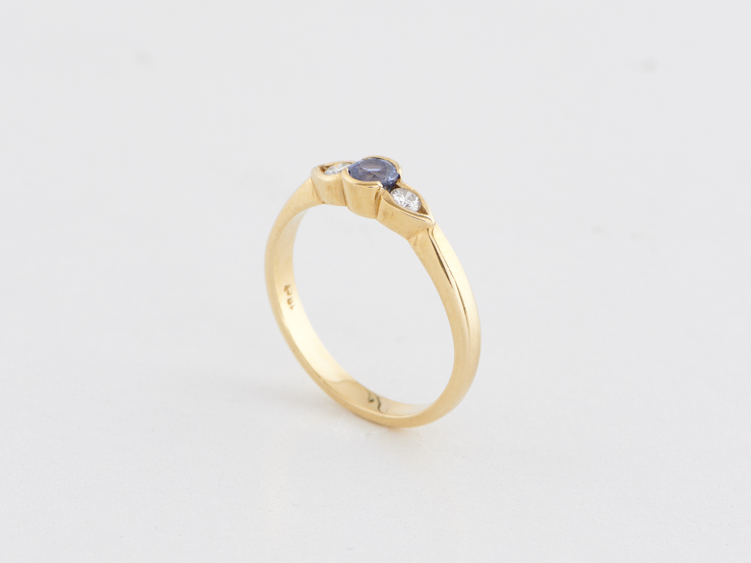 A SAPPHIRE AND DIAMOND SET RING IN 18CT GOLD, RING SIZE O, 3.41GMS