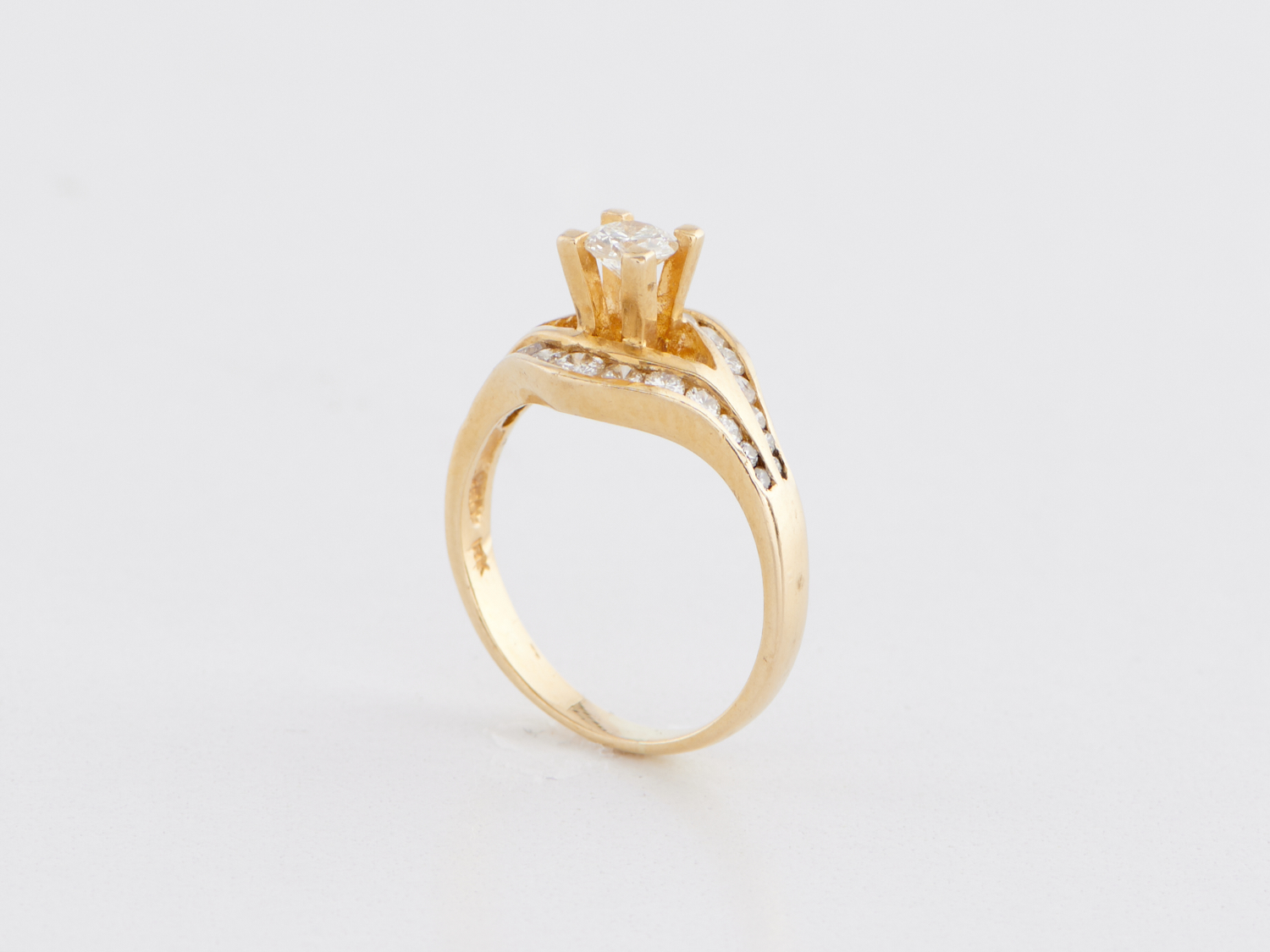 A DIAMOND SET RING IN 18CT GOLD, THE CENTRE DIAMOND WEIGHING APPROXIMALTEY 0.25CTS, APPROXIMATE RING SIZE H-I, APPROXIMATE WEIGHT 2.88GMS