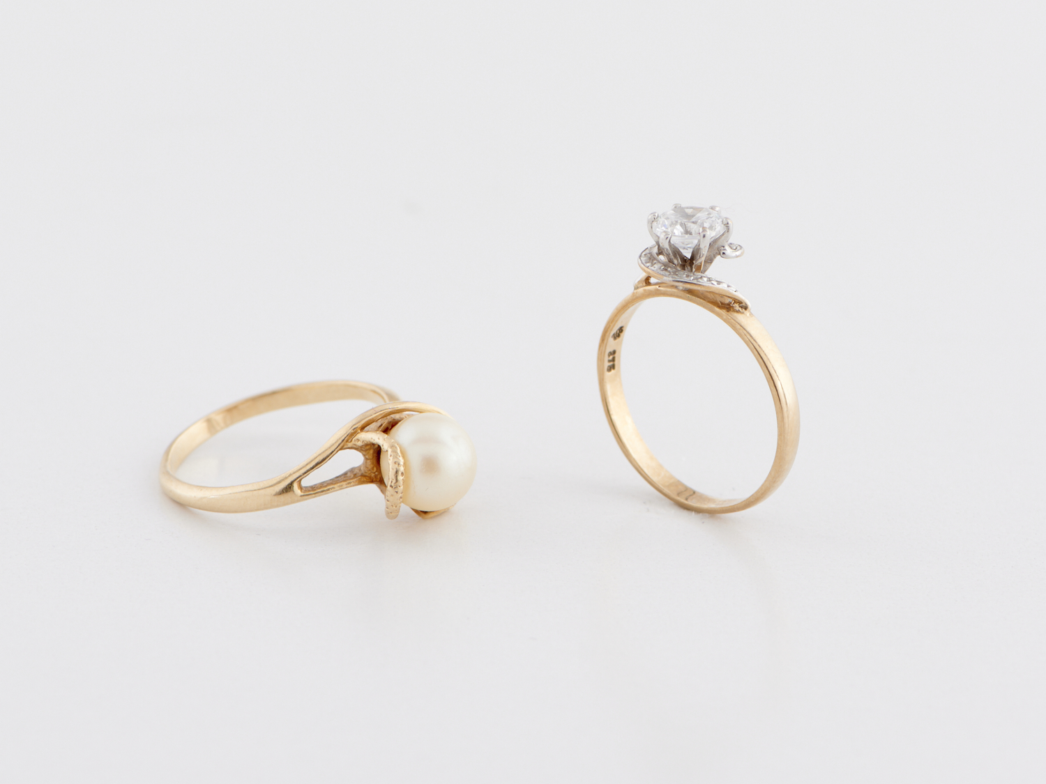 A GEM SET RING IN 9CT GOLD, APPROXIMATE RING SIZ P, APPROXIMATE WEIGHT 2.23GMS, TOGETHER WITH A PEARL SET RING IN 14CT GOLD, APPROXIAMTE RING SIZE P, APPROXIMATE WEIGHT 3.30GMS