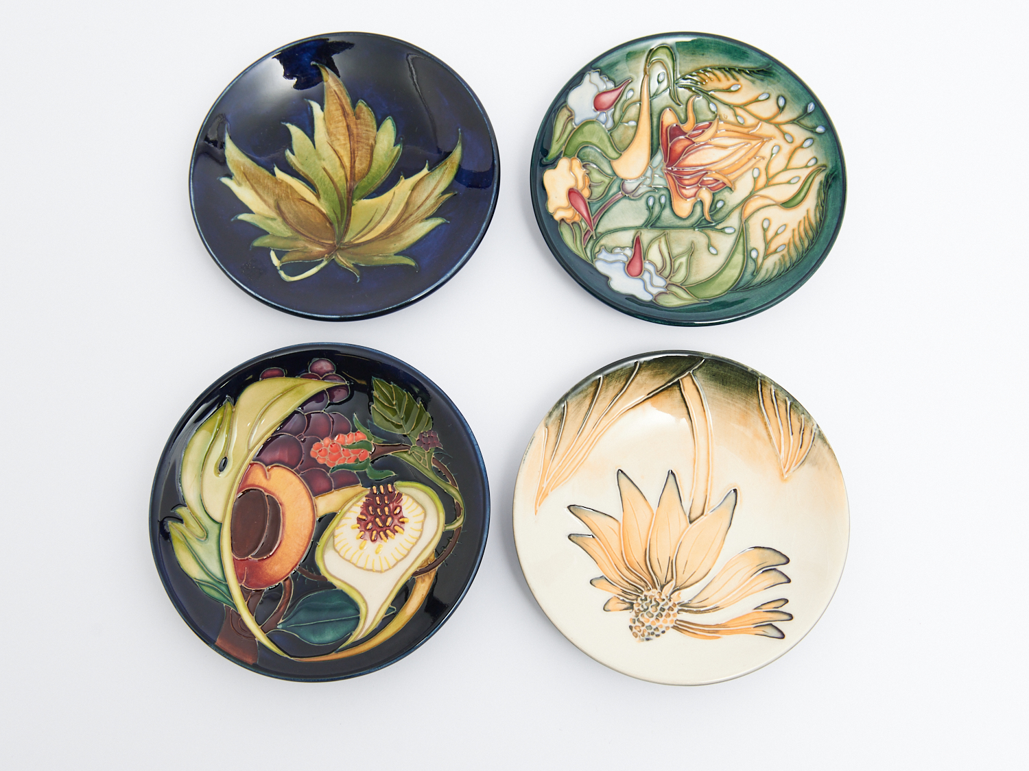 FOUR MOORCROFT PLATES INCLUDING "QUEENS CHOICE" AND OHTERS, DIA.11CM