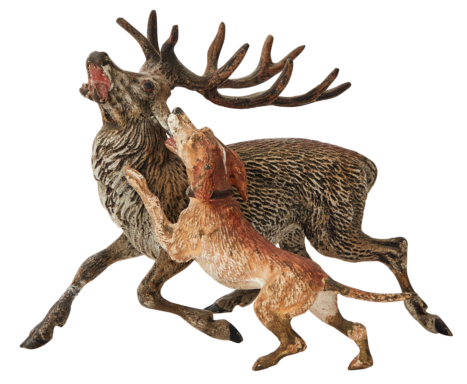 A VIENNESE COLD PAINTED BRONZE OF A HOUND ATTACKING A STAG