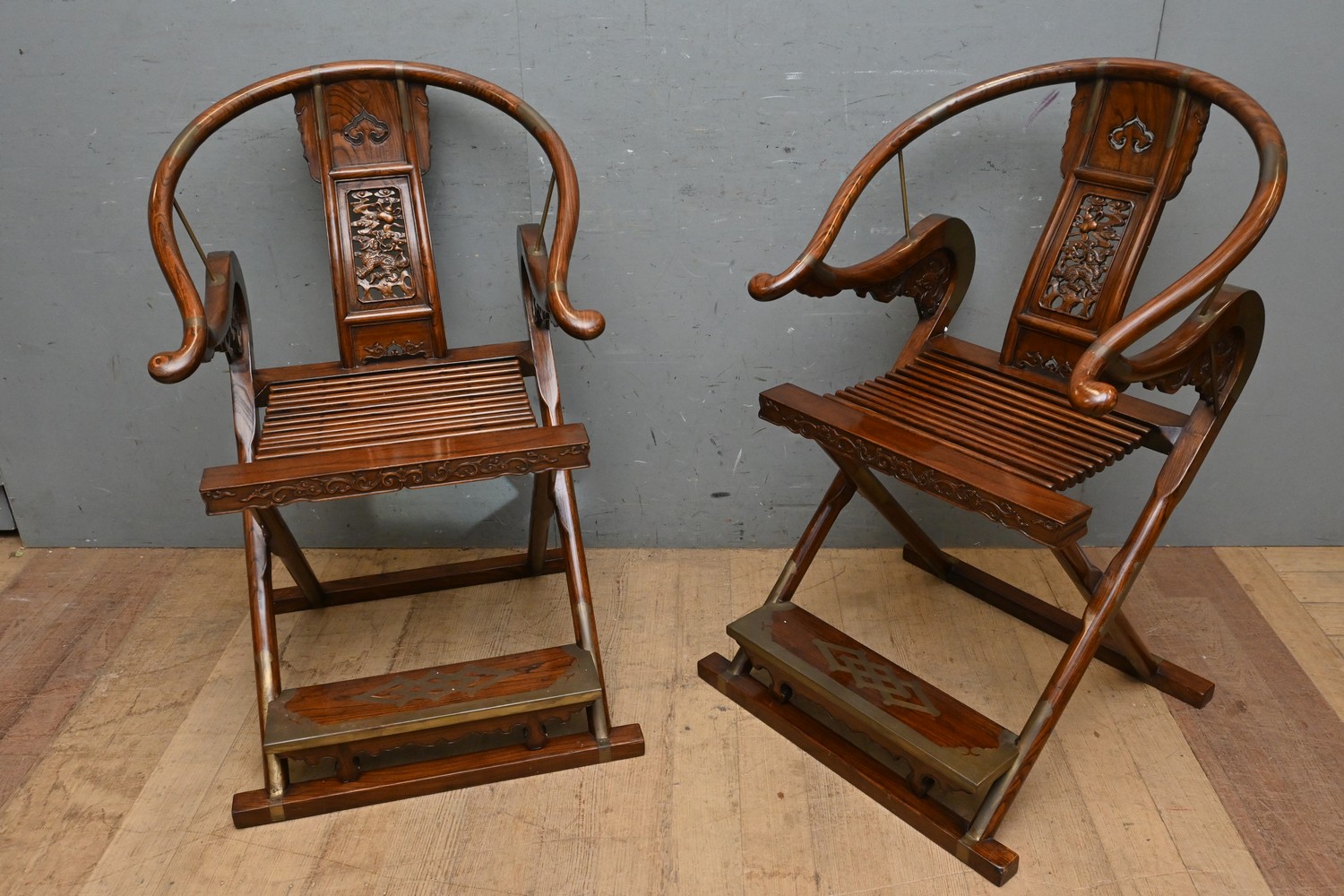 A PAIR OF CHINESE ELM HUNTING CHAIRS (H103 X W65 X D68 CM) (LEONARD JOEL DELIVERY SIZE: LARGE)